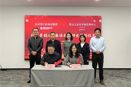 2024年12月26日,思亿欧与微软在微软中国首个工业元宇宙应用中心—昆山工业元宇宙应用中心,圆满完成了外贸营销AI智能体合作研发的签约仪式。
