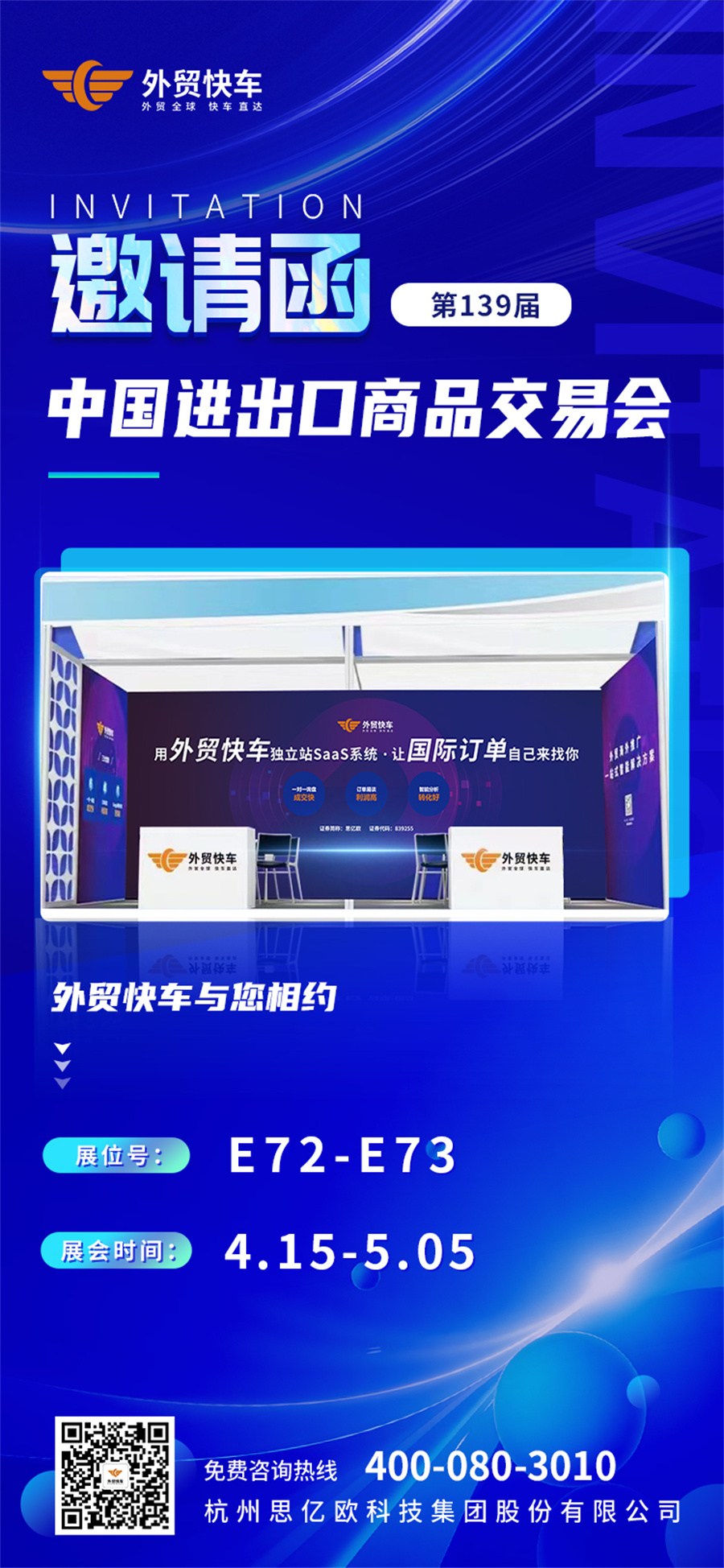 Hello139届广交会!这个春天,外贸快车在天桥区E72-73等你